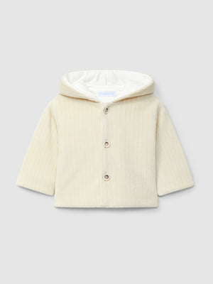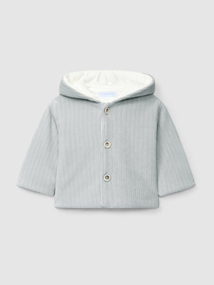 GILET A CAPUCHE EN VELOURS CANNELE