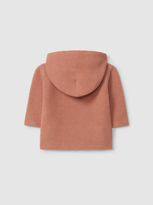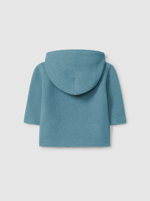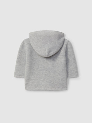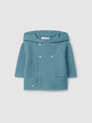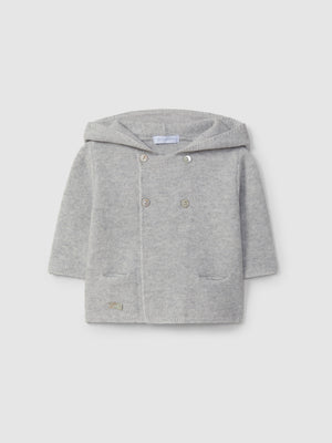 Gilet à capuche tricoté avec une touche de cachemire en point de chaînette. Poches fonctionnelles sur le devant. Fermeture croisée avec des boutons en nacre « Laranjinha »