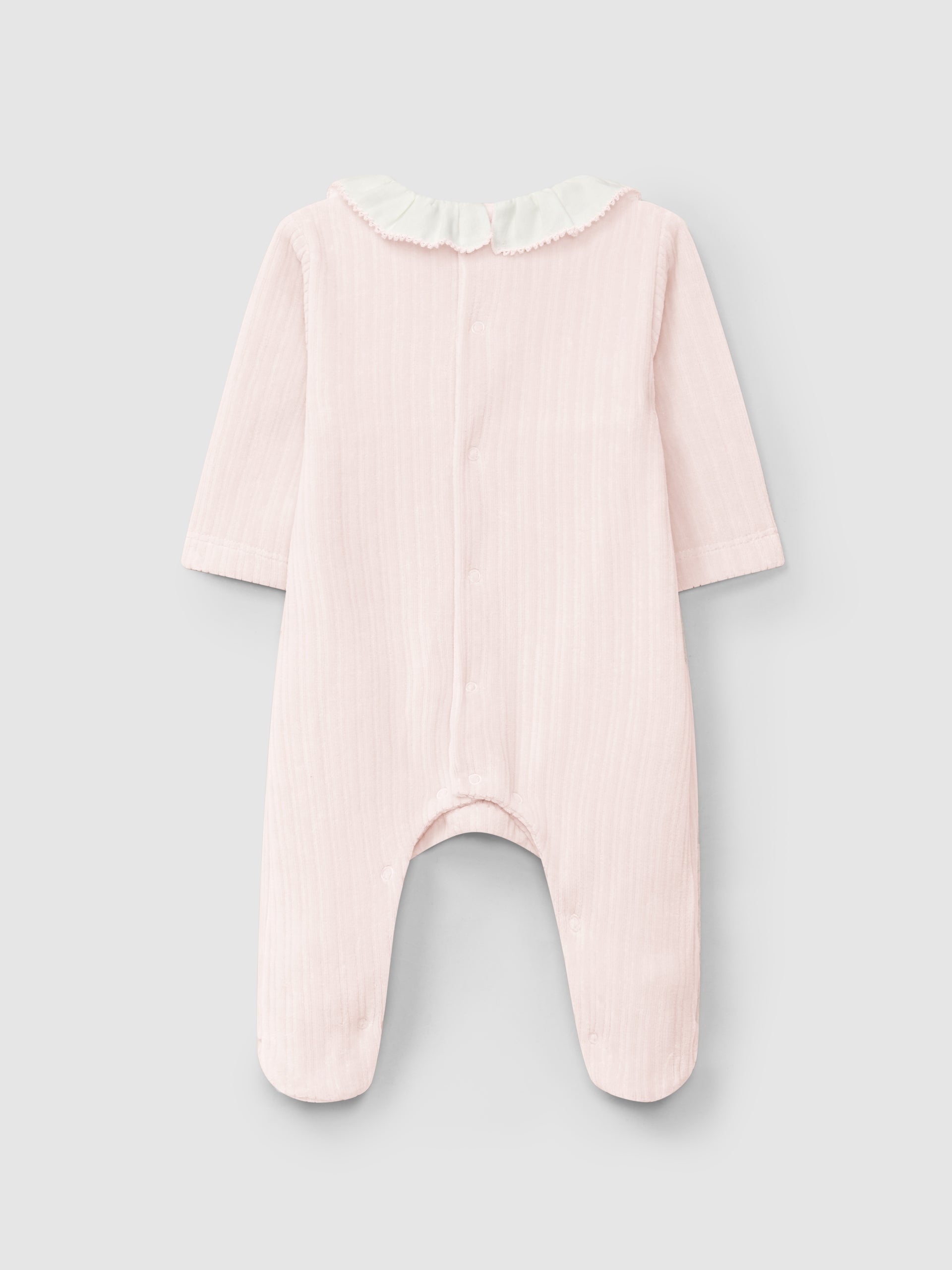 BABYGROW EN VELOURS CANNELE A COL A VOLANT ET DETAIL BRODE