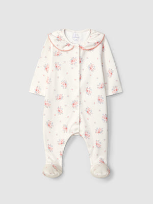 Babygrow en maille cardée 100 % coton avec imprimé à fleurs exclusif « Laranjinha ». Col avec détail de liseré de couleur en contraste. Fermeture avec des pressions sur le devant et à l’entrejambe.