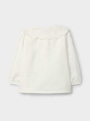 BLOUSE EN TISSU TEXTURE A COL EN BRODERIE ANGLAISE