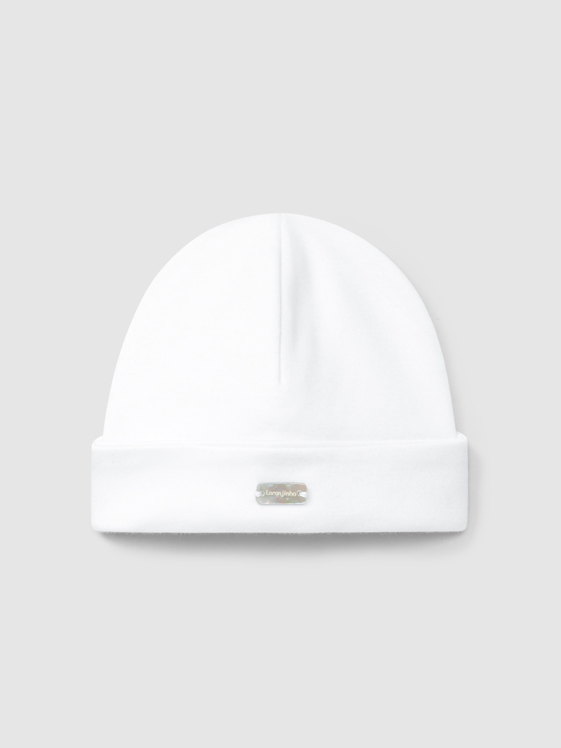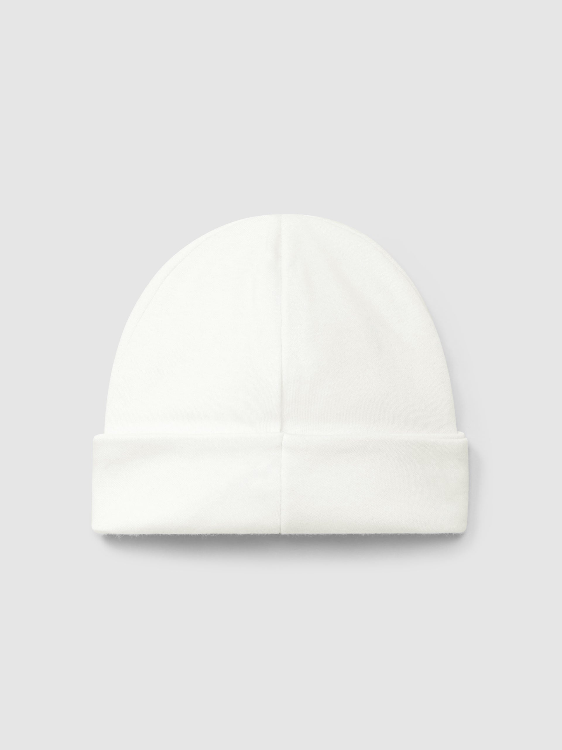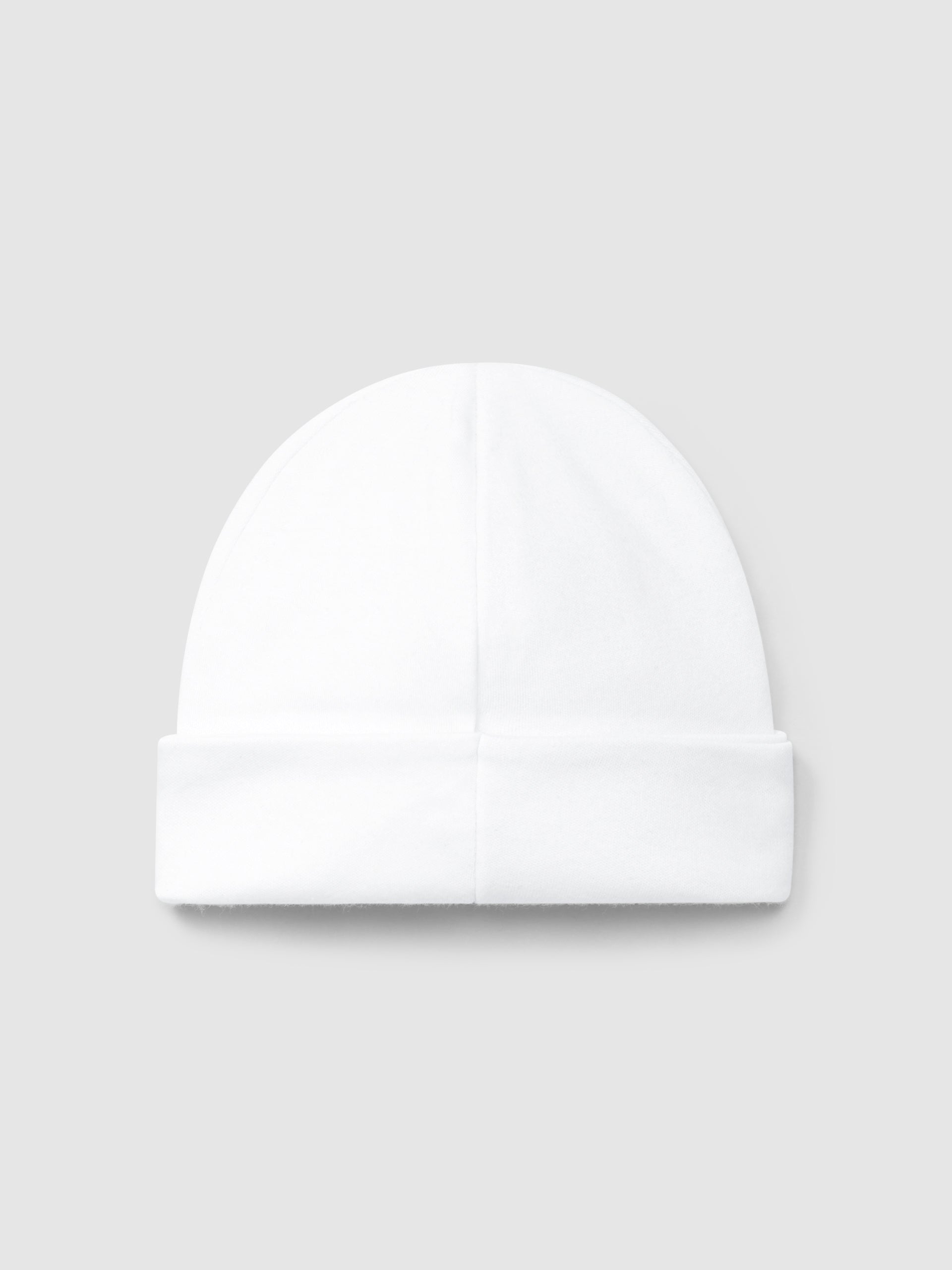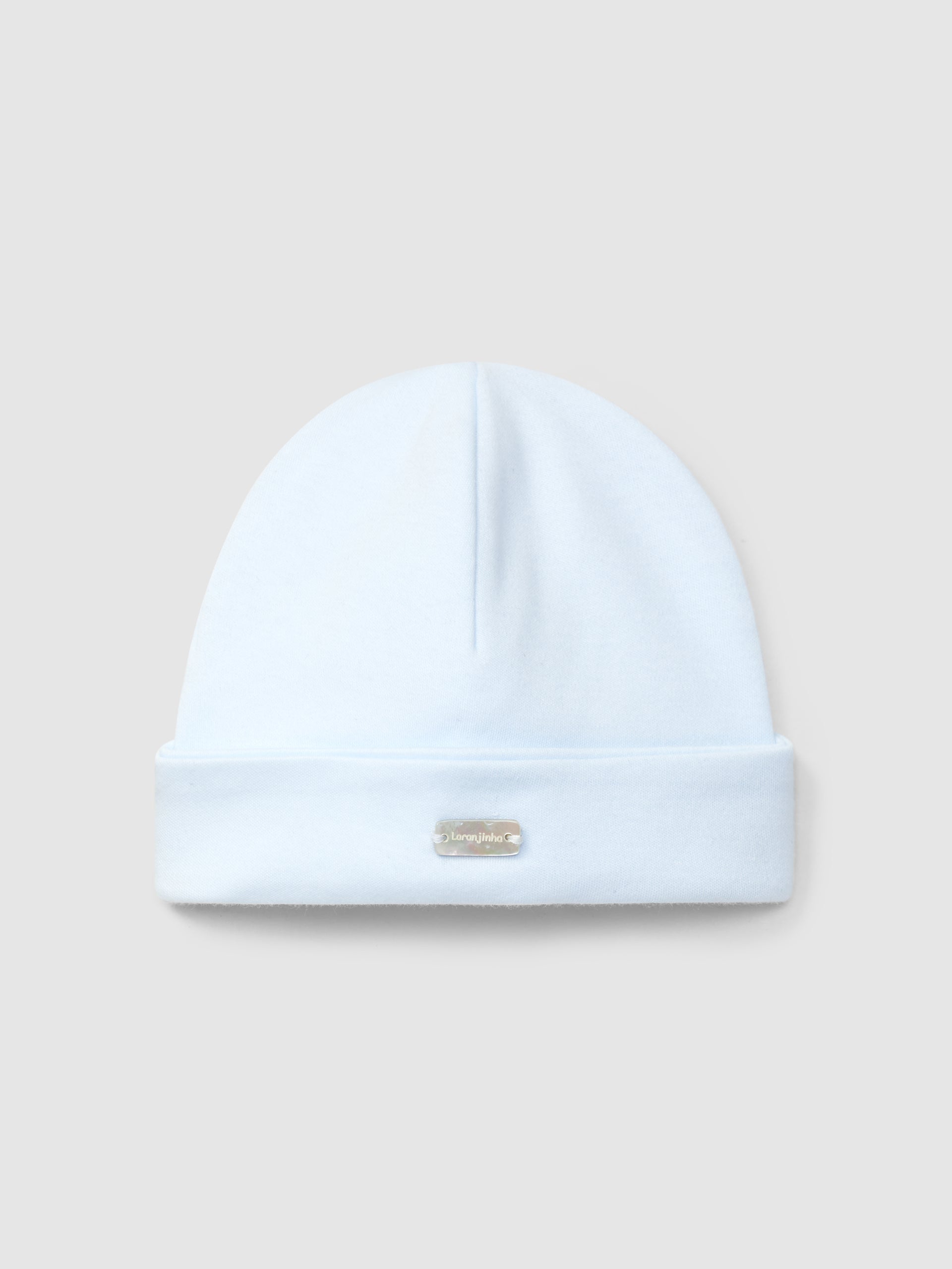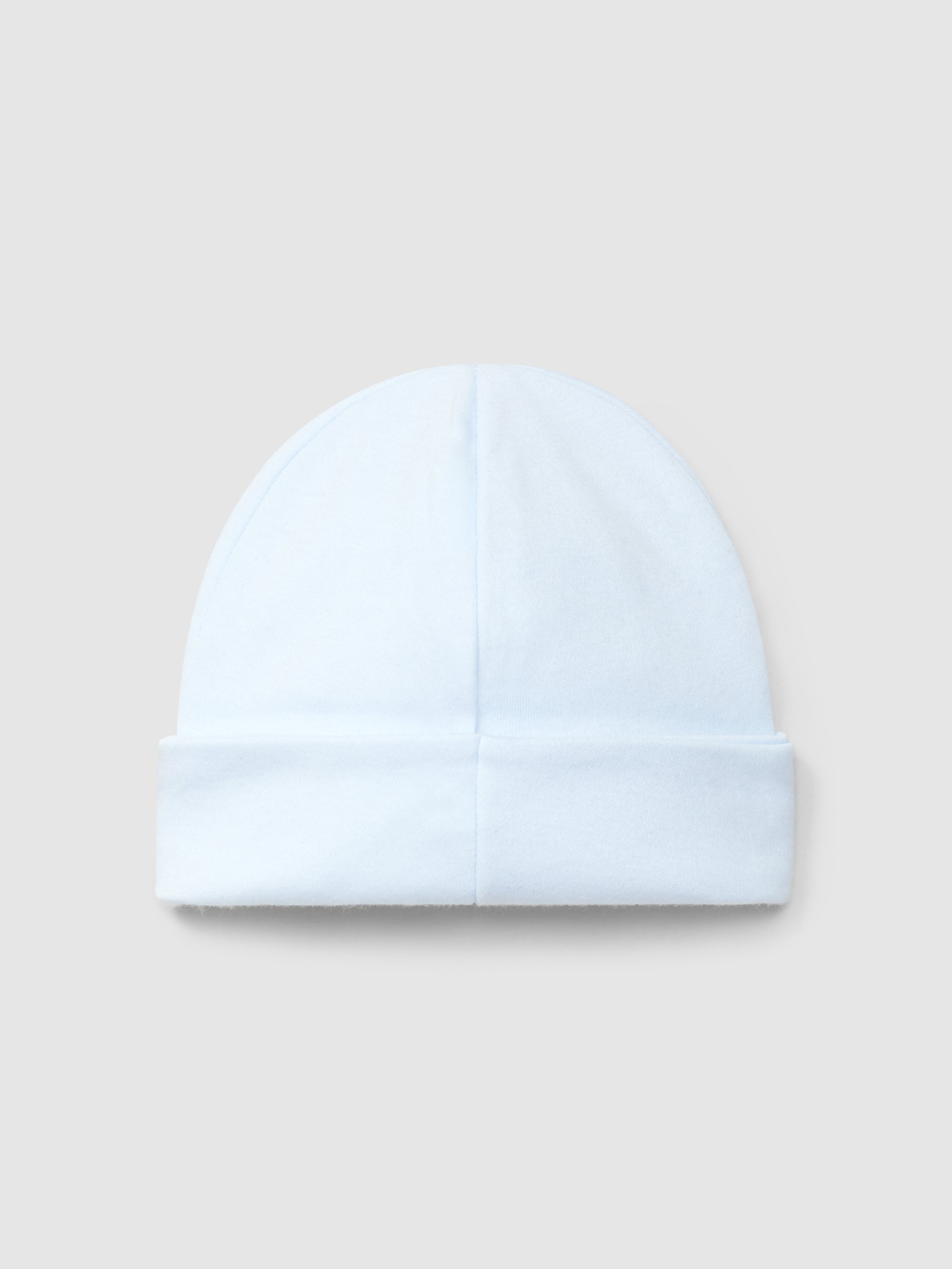 Bonnet uni en maille 100 % coton. Pli pour une meilleure adaptation à la tête du bébé.