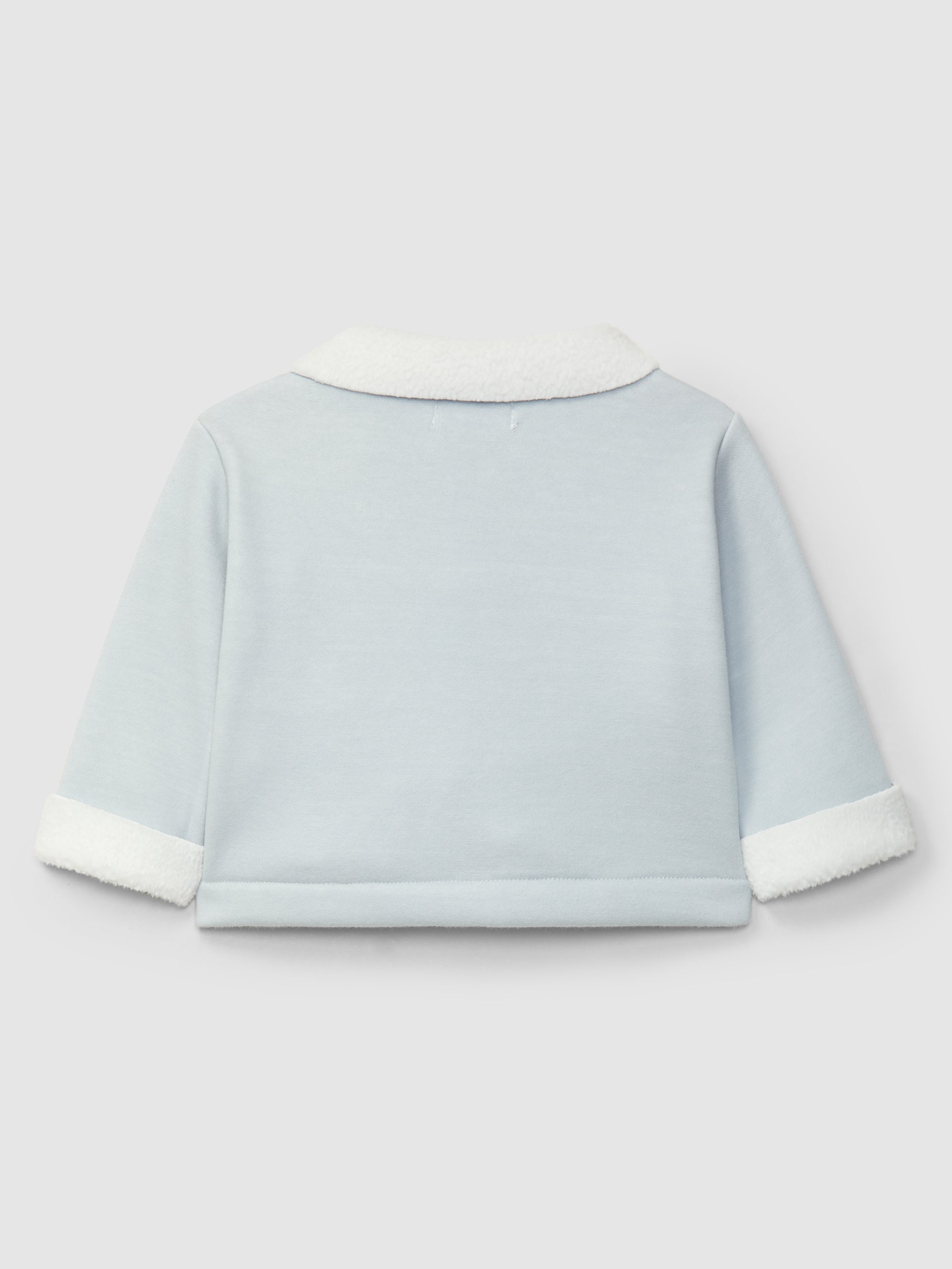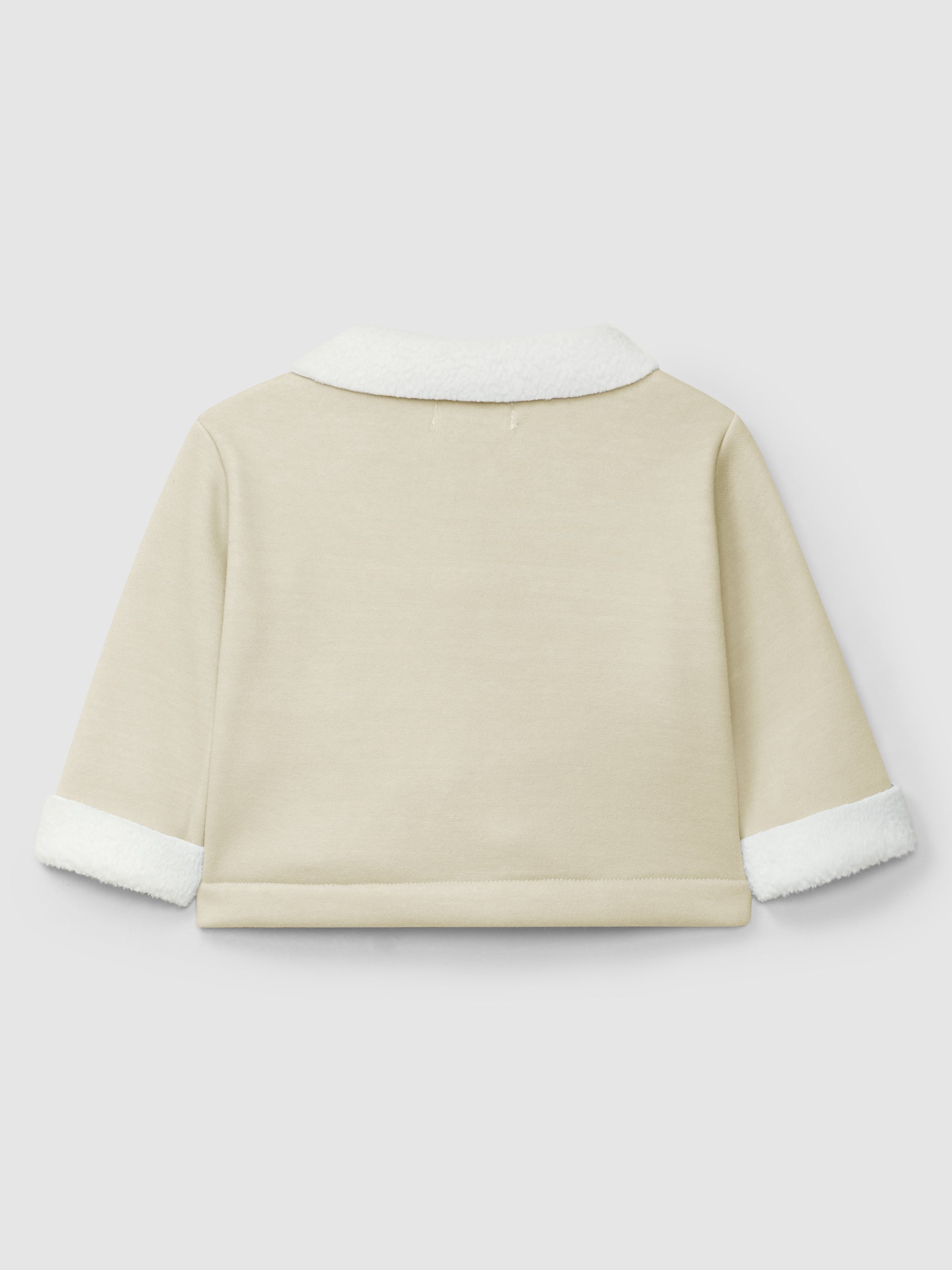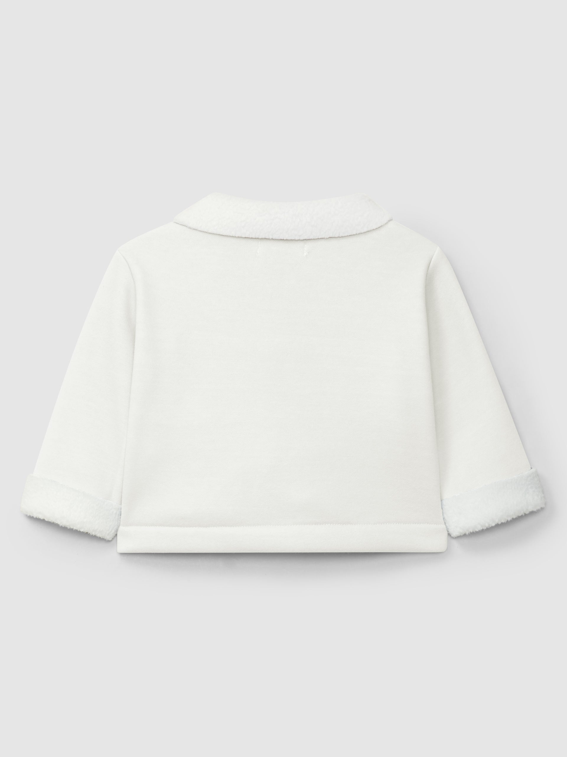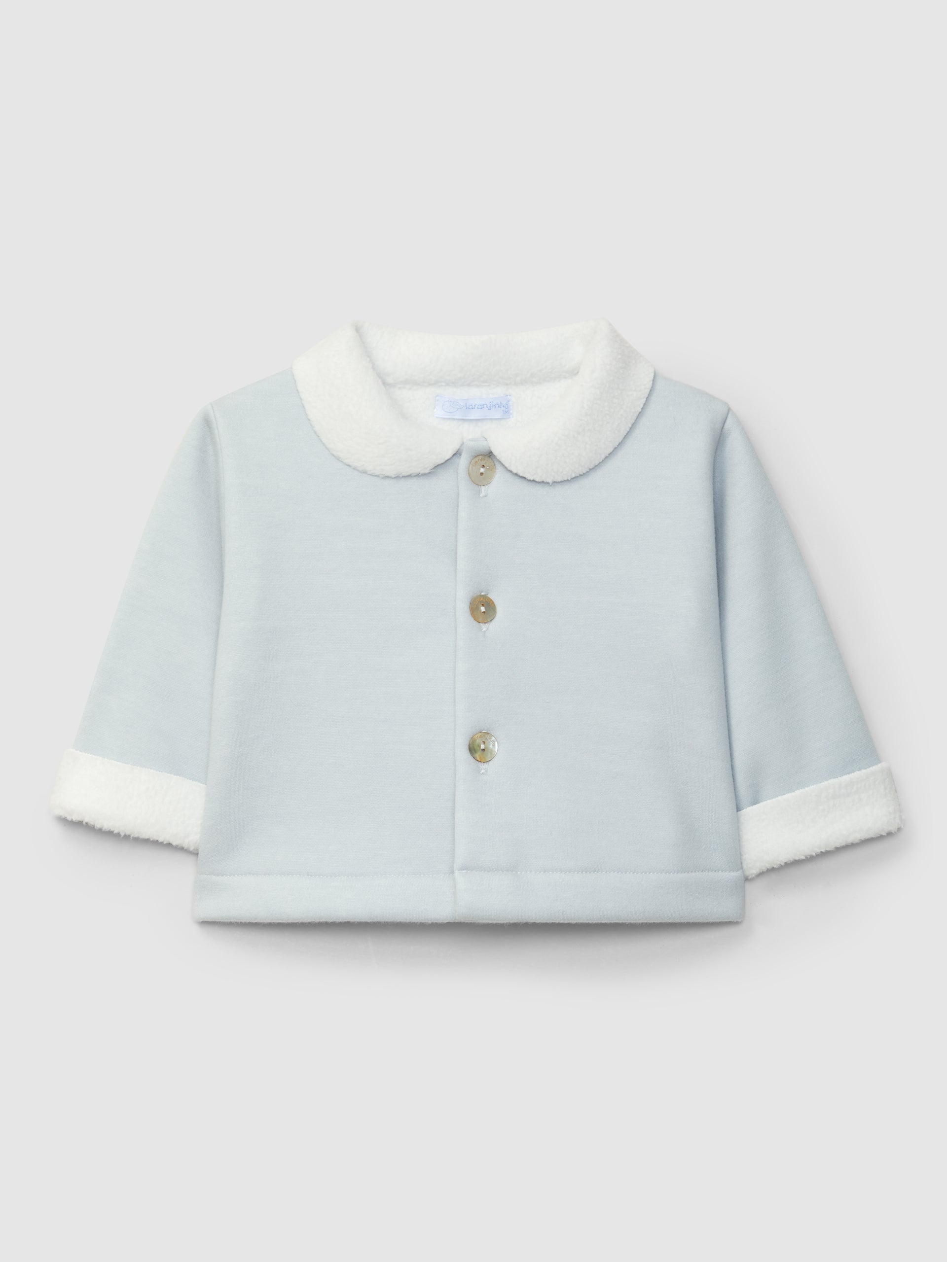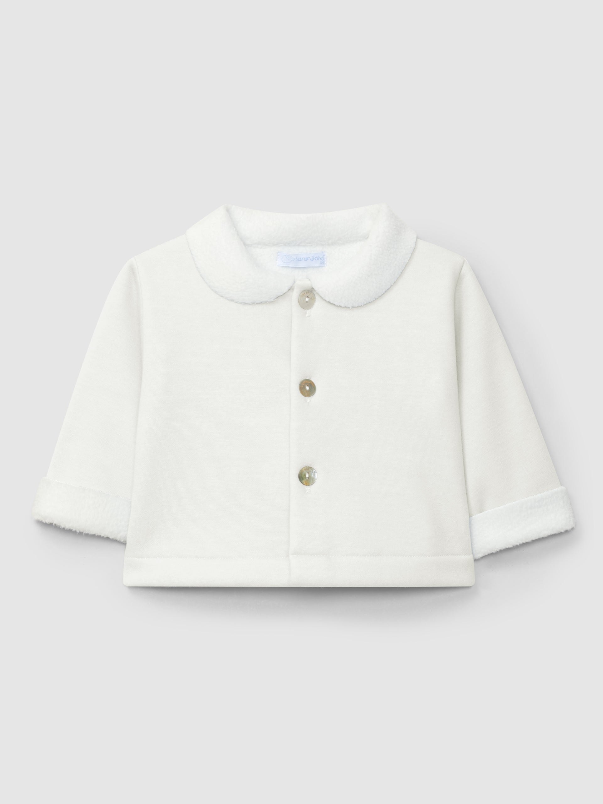 Gilet en maille double uni entièrement doublé en fourrure pratique et confortable. Les poignets peuvent être portés pliés ou dépliés pour une plus grande durabilité. Ouverture avec des boutons en nacre « Laranjinha ».