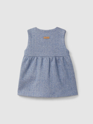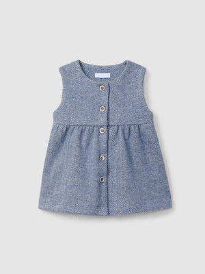 Jupe-salopette en maille en épi douce et malléable. Fermeture avec des boutons sur le devant sur toute la longueur.
