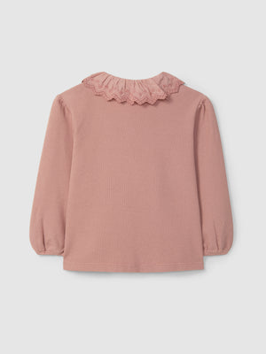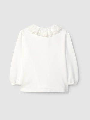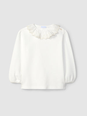 LONGLSEEVE EN MAILLE GAUFREE AVEC COL EN BRODERIE ANGLAISE