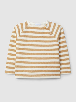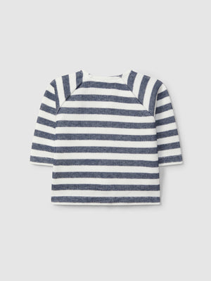 Longsleeve en maille à rayures avec aspect tricoté 100 % coton. Fermeture sur le devant avec des boutons en bois « Laranjinha ».