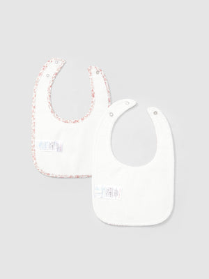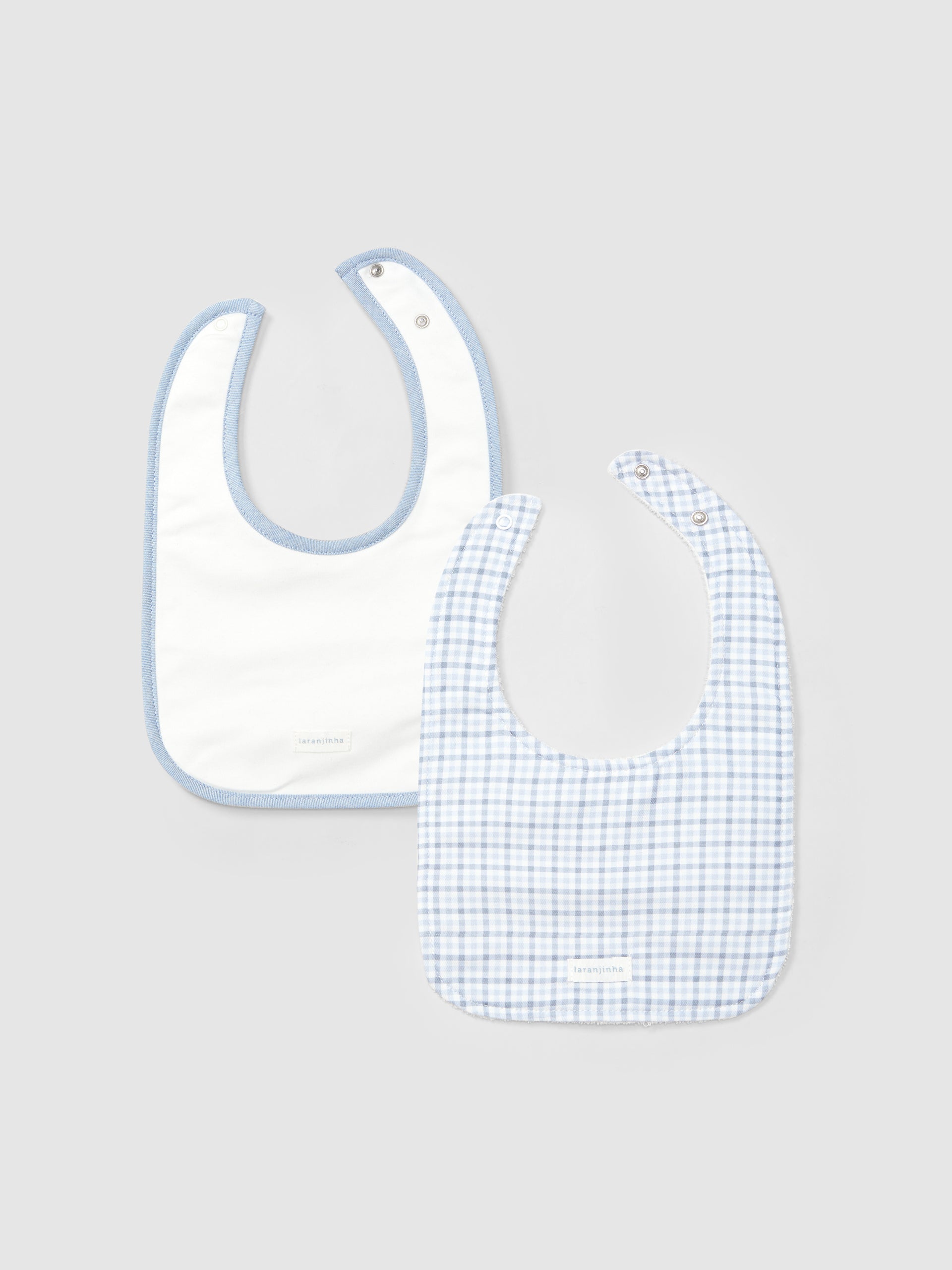 Pack de deux bavoirs doublés en maille turque imperméable. Pressions réglables dans le cou pour une meilleure adaptation à la croissance du bébé. L’un en tissu imprimé et l’autre en maille de coton avec détail sur tout le tour.
