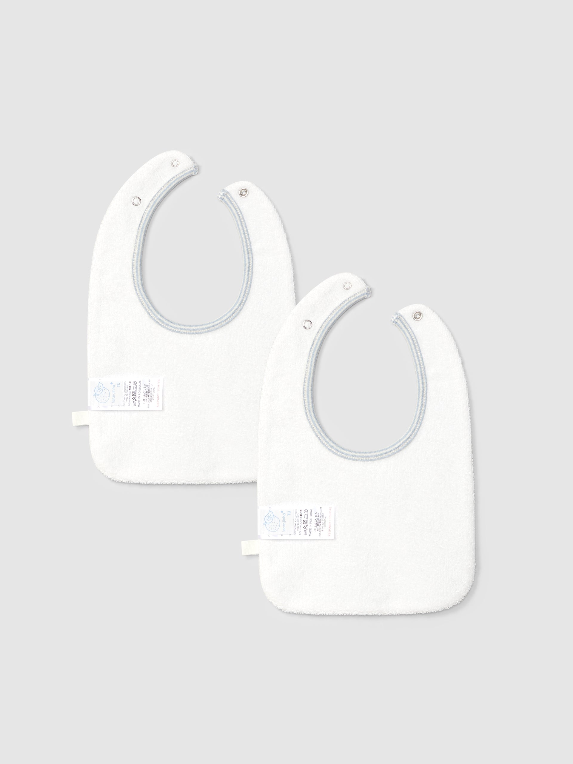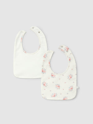 Pack de deux bavoirs doublés en maille turque imperméable. Pressions réglables dans le cou pour une meilleure adaptation à la croissance du bébé. L’un en maille de coton imprimée et l’autre uni.