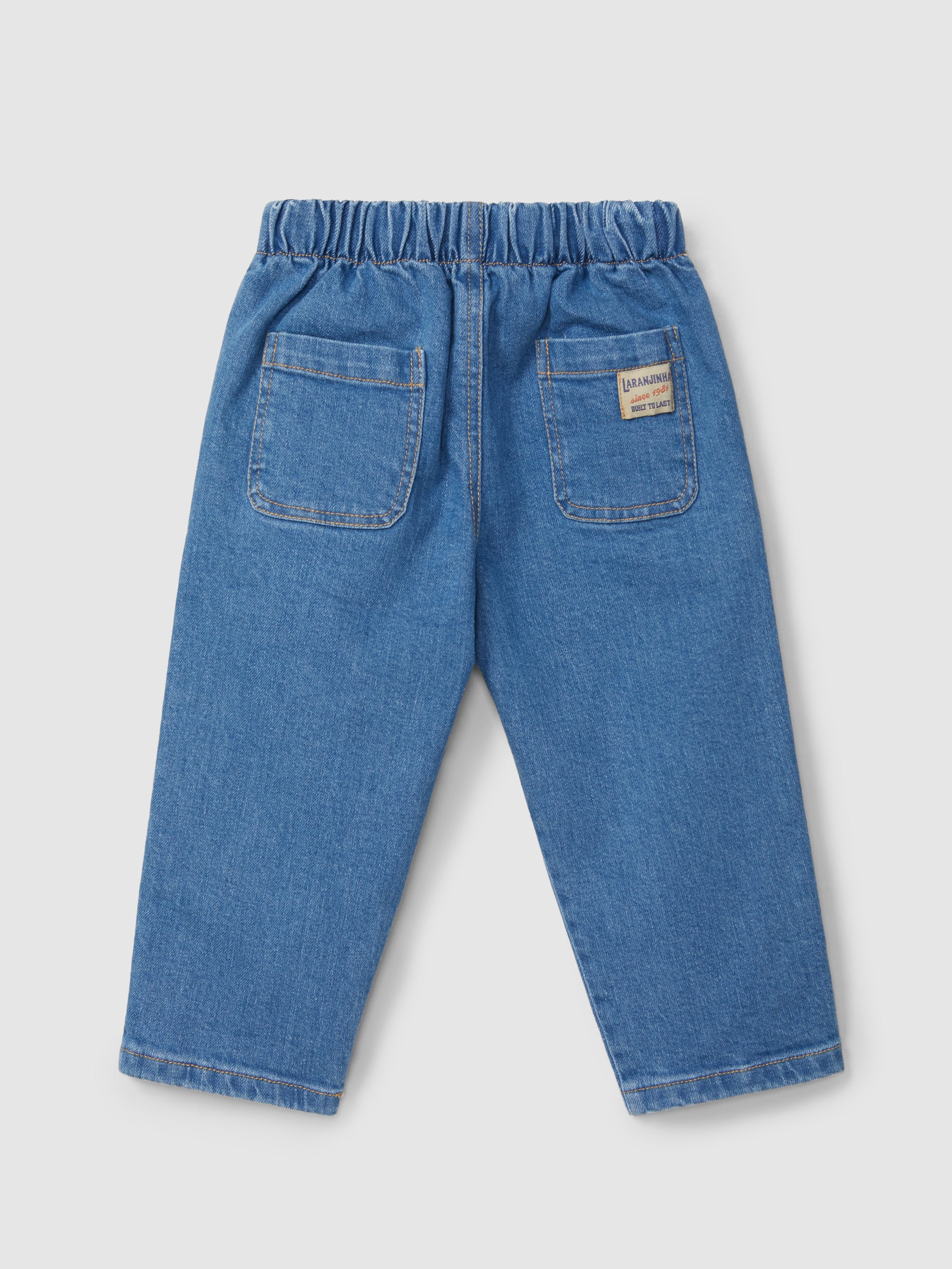 Pantalon pull-up en jean léger et malléable à quatre poches fonctionnelles. Pression décorative à la taille. Élastique intérieur réglable à la taille pour une meilleure adaptation.