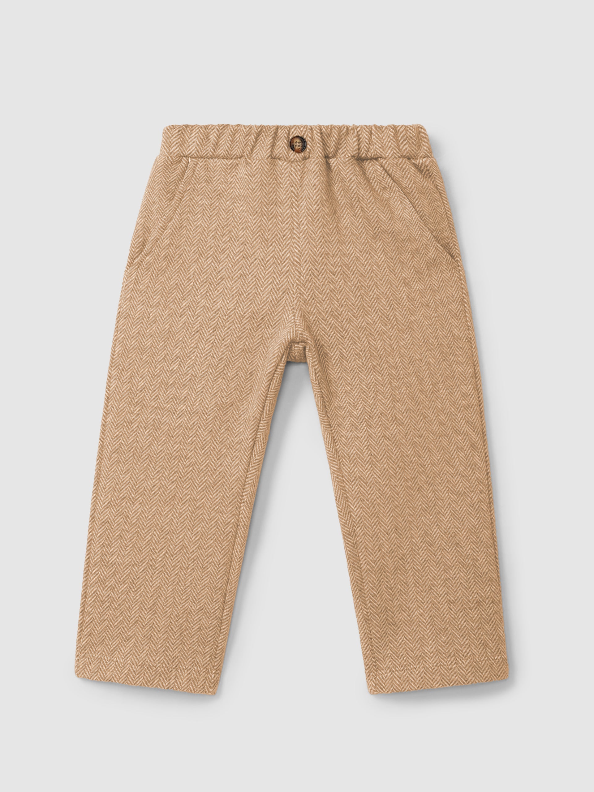 Pantalon pull-up en maille en épi douce et malléable à quatre poches fonctionnelles. Bouton décoratif à la taille. Cordon fonctionnel à l'intérieur à la taille pour une plus grande adaptabilité.
