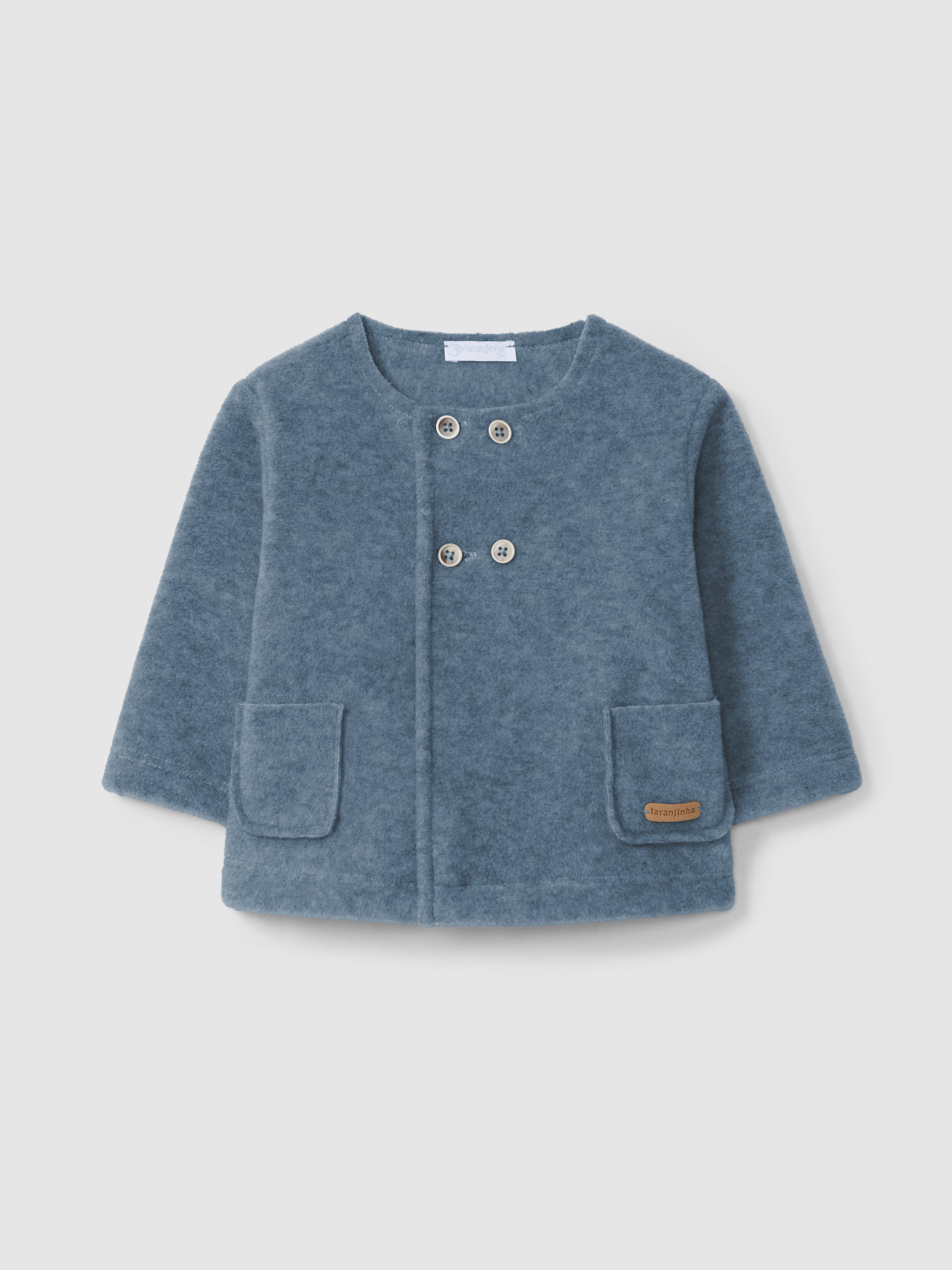 Veste polaire avec poches fonctionnelles sur le devant. Fermeture croisée avec des boutons sur le devant.